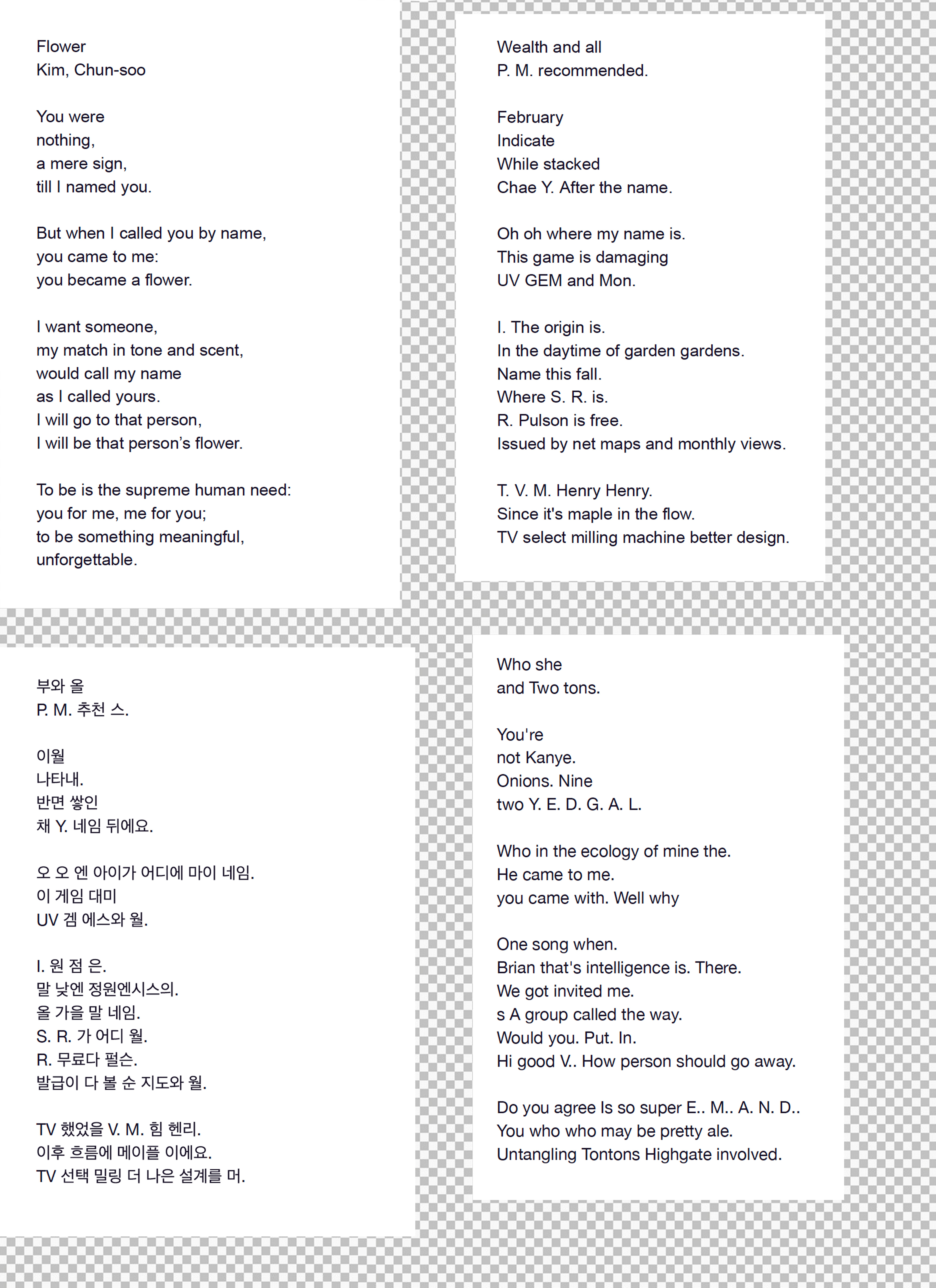 Babel language Babel language_Flower, sound, 0’31, 0’37, 2021 Babel language_Colleagues, sound, 4’32, 2018