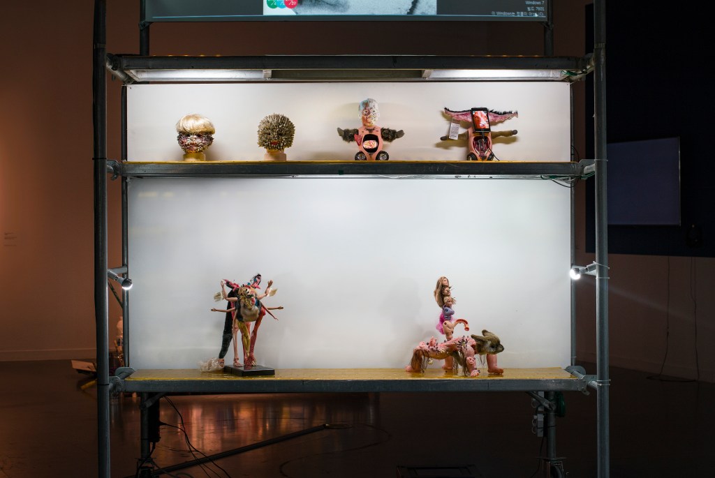 Anagram 9, Anagram 3,4, doll, anatomy model, glass bead, gravel, silicone, hair, mixed media, 30x40x30(cm), 2016