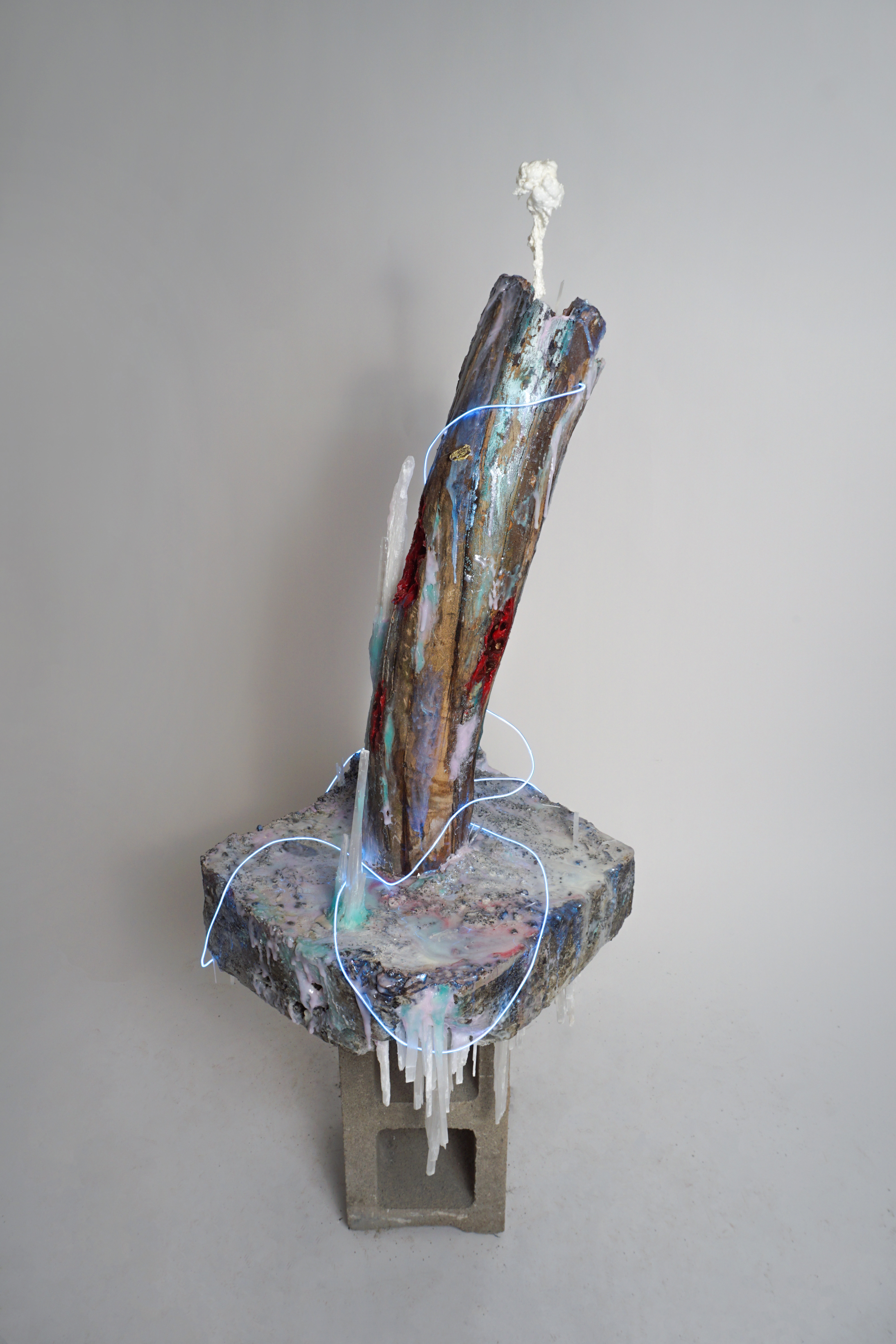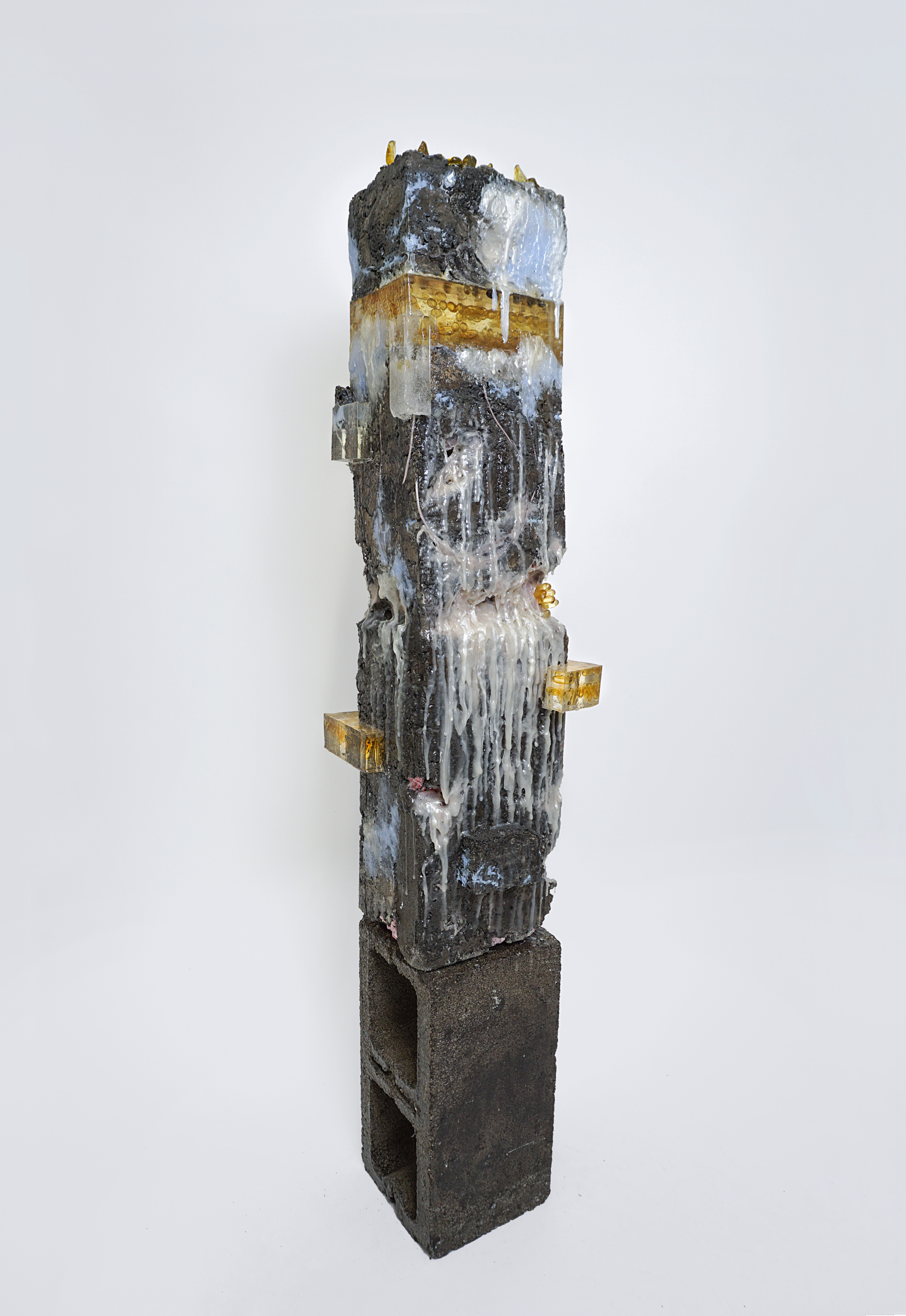 Untitled (Jin), concrete, wood, resin, silicone, crystal, LED light, 47.5″x19″x18″, 2018