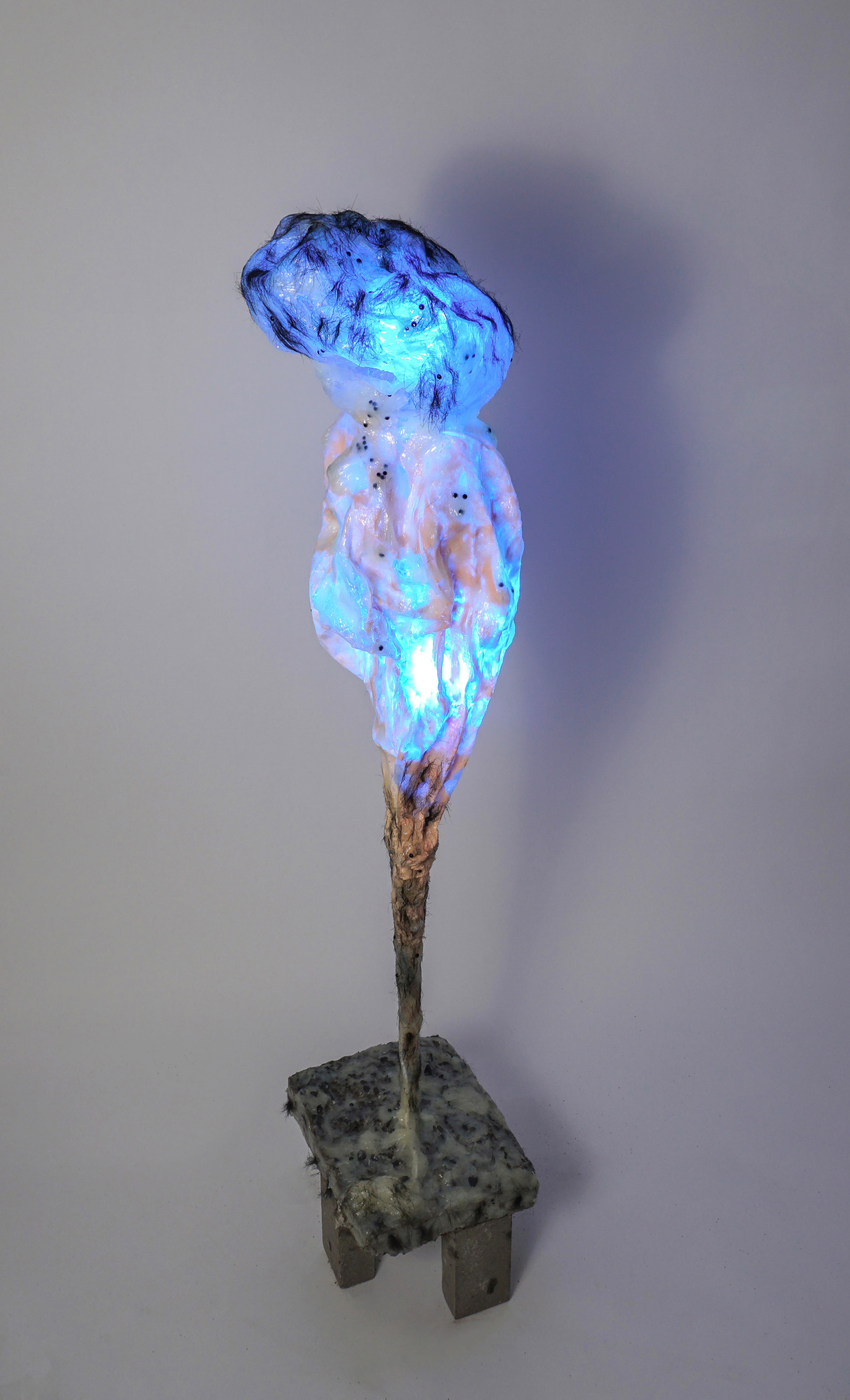 Untitled (Jennifer), petroleum jelly, concrete, silicone, acrylic paint, LED, hair, bead, 62”x11”x14”, 2019